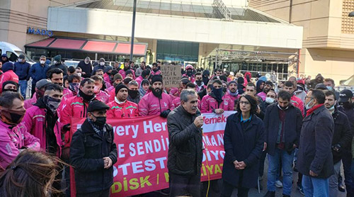 Geçtiğimiz günlerde Yemeksepeti’ne karşı boykot çağrısı yaptık. Bunun sonucu olarak depoları bizzat ben de gezdim. Tüm siparişler yüzde 70 oranında düşmüş durumda. Buradan halkımızı, sendikalarımızı tebrik ediyorum. Buradaki hak mücadelesi, buradaki sınıf mücadelesi, buradaki ekmek kavgası başarıya ulaşılıncaya kadar devam edecek. 3 kişilik bir heyetle işverenle görüşme talebimiz olacak. Biz bu sorunun bir taraftan da görüşmeler yoluyla da çözülmesini istiyoruz. Birtakım güçler direnişimizi provoke etmeye çalışıyor. Bazı işverenler tutanak tutmak gibi kuru tehditlerde bulunuyor. Kim bu ekmek kavgasını provoke ediyorsa alçaktır.